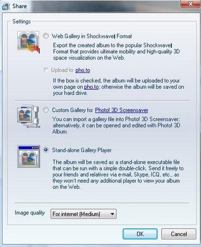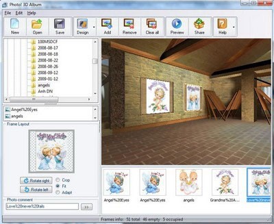 Photo! 3D Album là tiện ích miễn phí, cho phép bạn tạo những album ảnh ấn tượng dưới dạng một căn phòng 3D, nơi hình ảnh của bạn sẽ được trưng bày như những bức tranh nghệ thuật. Chương trình rất dễ sử dụng, ngay cả với những người mới bắt đầu làm quen với máy tính.