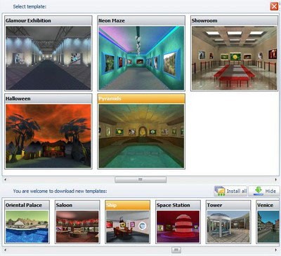 Tiếp theo, bạn cần chọn phong cách cho showroom của mình. Mặc định có 11 phòng trưng bày khác nhau, bạn cũng có thể tải thêm các kiểu dáng khác từ trang chủ của chương trình. (Hướng dẫn tải sẽ được trình bày ở phần sau).