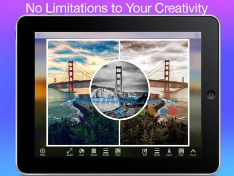 Bên cạnh đó, Photo Collage Creator tích hợp bộ công cụ chỉnh sửa ảnh mạnh mẽ từ Aviary , hỗ trợ các thao tác cắt, xoay ảnh và thêm các hiệu ứng đặc biệt.