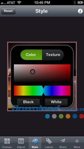 Bảng chọn màu (color picker) trực quan giúp bạn dễ dàng thay đổi màu sắc của khung ảnh theo ý muốn.
