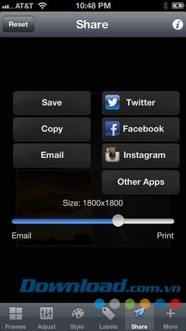 Chia sẻ ảnh đã chỉnh sửa một cách nhanh chóng qua các nền tảng phổ biến như Email, SMS, Facebook, Twitter, Instagram, Dropbox và nhiều mạng xã hội khác.