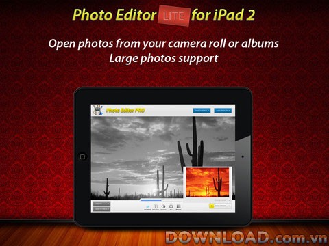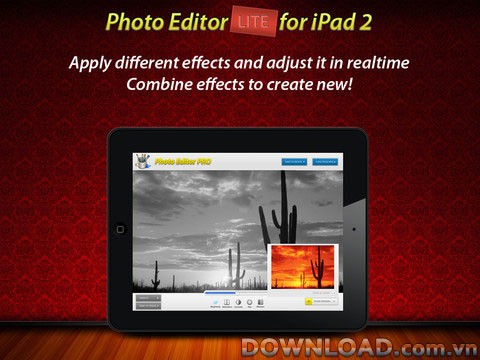 Photo Editor Lite for iPad 2 tích hợp đầy đủ các chức năng và hiệu ứng ảnh cơ bản, đáp ứng mọi nhu cầu chỉnh sửa hình ảnh của bạn.