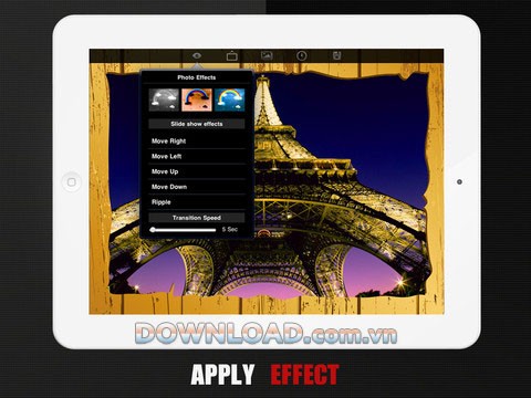 Tốc độ trình chiếu slideshow và các hiệu ứng đi kèm hoàn toàn có thể được điều chỉnh theo ý muốn.