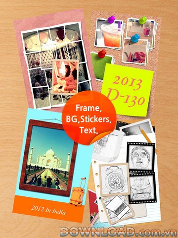 Kho hình dán phong phú với 59 lựa chọn, cùng 14 khung ảnh độc đáo.