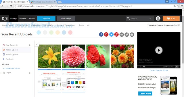 Sau khi quá trình tải lên hoàn tất, hãy đăng nhập vào tài khoản Photobucket trên trình duyệt để thưởng thức những bức ảnh và video đã được bảo vệ an toàn.