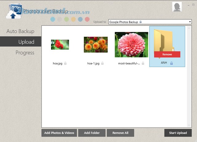 Phần mềm sẽ tự động tải lên các hình ảnh và video mới thêm vào thư mục đã chọn trong tài khoản Photobucket của bạn.