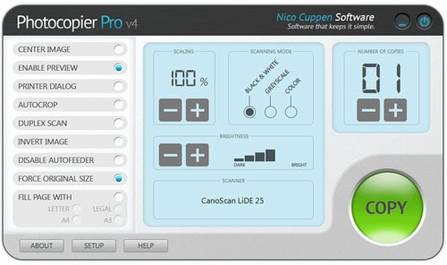 Phần mềm Photocopier Pro được thiết kế để giúp bạn tạo bản sao của các tài liệu một cách dễ dàng. Quá trình thực hiện đơn giản: bạn chỉ cần đưa tài liệu vào máy scan, khởi động chương trình Photocopier Pro và nhấn nút Copy.