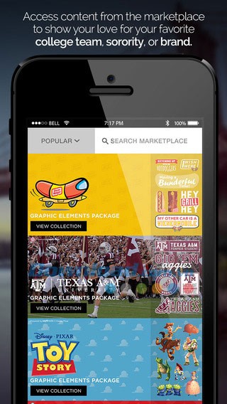 Đừng bỏ lỡ trang Marketplace của Photofy để cập nhật liên tục các nội dung mới, cả miễn phí và có bản quyền từ các nghệ sĩ nổi tiếng, cũng như các thương hiệu lớn như Disney / Disney Pixar, Shrek, Popeye…