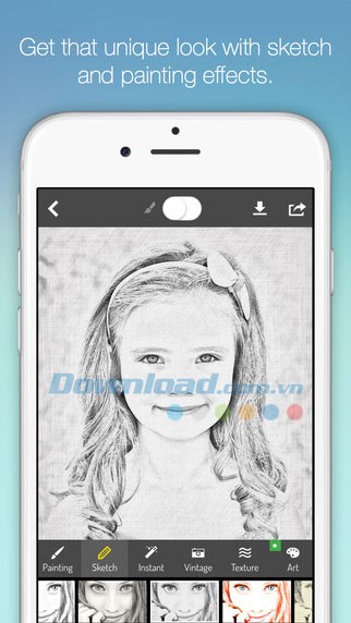 Nếu bạn mong muốn có được những hiệu ứng ảnh nghệ thuật cao cấp hơn, hãy khám phá hiệu ứng Sketch trong PhotoMania. Tính năng này cung cấp nhiều loại bút vẽ chân dung, bút chì, chì màu, phong cách vẽ nguệch ngoạc, bút mực và nhiều loại bút vẽ tranh chuyên dụng khác.