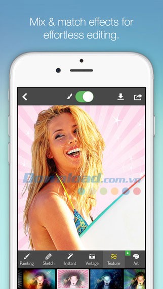 PhotoMania cho phép bạn thêm nhiều loại họa tiết với đa dạng màu sắc lên ảnh, mở ra không gian sáng tạo để bạn thỏa sức thể hiện ý tưởng với các loại hoa văn, nét vẽ tinh tế.