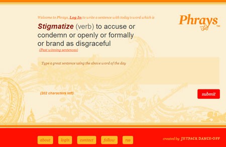 Một tính năng nổi bật của trang là yêu cầu người dùng phải đăng ký thành viên để tham gia viết câu sử dụng các từ vựng đã học.