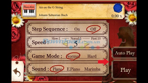 Bên cạnh khả năng mô phỏng việc chơi đàn, ứng dụng Piano Lesson PianoMan còn mang đến trải nghiệm thưởng thức âm nhạc tuyệt vời thông qua chế độ Auto Play.