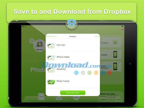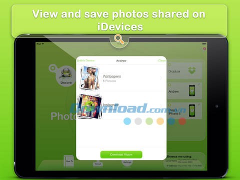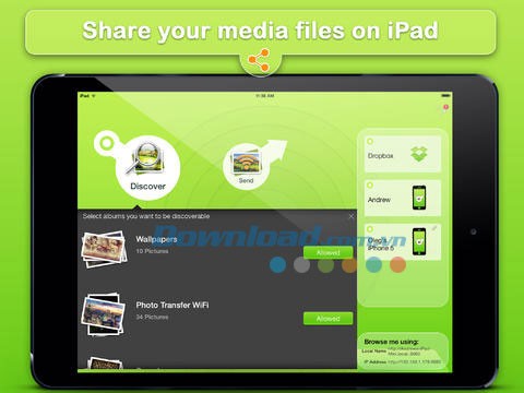 Bạn có thể chọn và chia sẻ album đa phương tiện trên thiết bị iDevice của mình để người khác có thể xem trước và tải xuống các tệp tin bạn đã chọn. Biến iPhone hoặc iPad thành một máy chủ đa phương tiện chưa bao giờ đơn giản đến thế.