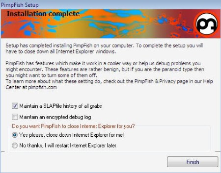 PimpFish tích hợp một thanh công cụ (toolbar) vào Internet Explorer và bổ sung một vài tùy chọn tiện lợi vào menu chuột phải.