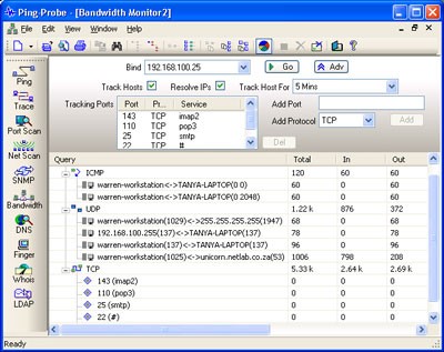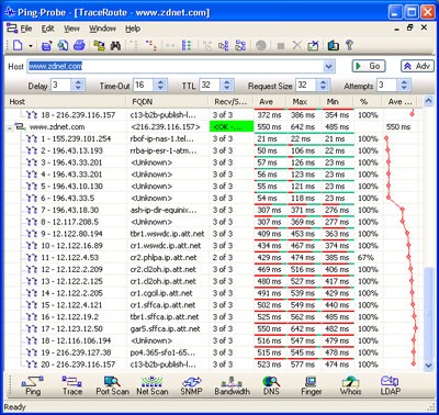 Ping-Probe là một ứng dụng mạng mạnh mẽ, tích hợp nhiều tính năng hữu ích. Phần mềm này cung cấp tới 10 công cụ chuyên nghiệp, bao gồm: Traceroute, TCP Port Scanner, Network Scanner, SNMP Browser, Bandwidth Monitor, DNS Client, Finger Client, Whois Client, và LDAP Client.