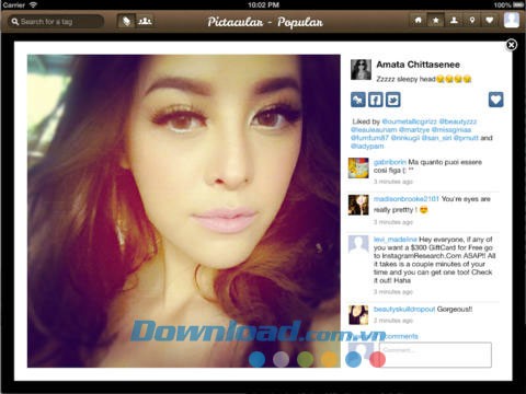 Pictacular for iPad không chỉ để xem ảnh, mà còn cho phép bạn thể hiện sự yêu thích bằng cách "like" ảnh và đưa ra những bình luận tương tác với những người dùng khác.