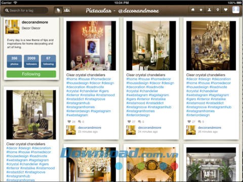 Pictacular for iPad giới thiệu một số người dùng Instagram nổi bật nhất, giúp bạn khám phá những bức ảnh đẹp nhất mà họ chia sẻ mà không cần theo dõi quá nhiều tài khoản.