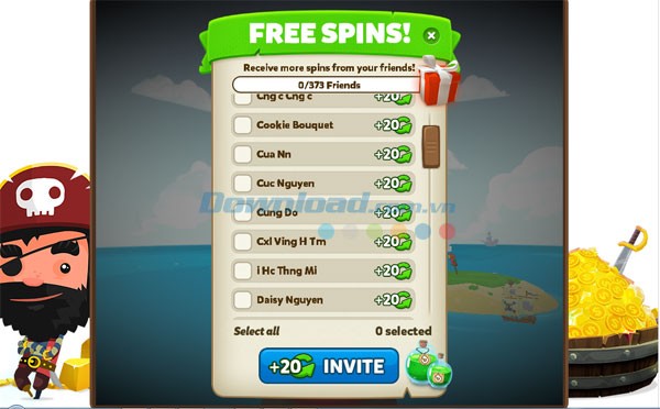 Bạn cũng có thể yêu cầu bạn bè trên Facebook gửi lượt chơi (số lần quay) để tiếp tục cuộc phiêu lưu của mình.
