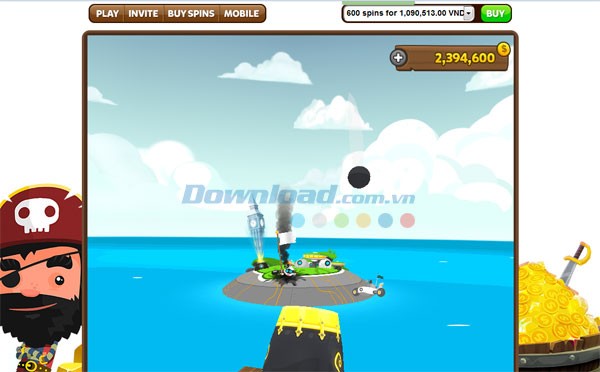 Nếu may mắn, bạn có thể sở hữu tới 1 triệu vàng. Ngoài ra, còn có những vật phẩm thú vị khác như: pháo để tấn công đảo của đối thủ, spin để tăng số lần quay, khiên để bảo vệ đảo của bạn, v.v.