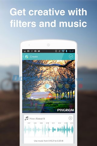 Pixgram cho Android được thiết kế để mang đến trải nghiệm chỉnh sửa và chia sẻ ảnh tuyệt vời. Ứng dụng này cho phép người dùng tùy biến các buổi trình chiếu ảnh bằng cách thêm nhạc nền phù hợp.