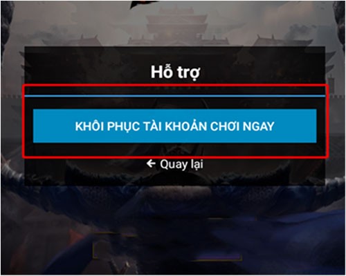 Bước 2: Chọn Khôi phục tài khoản Chơi Ngay.
