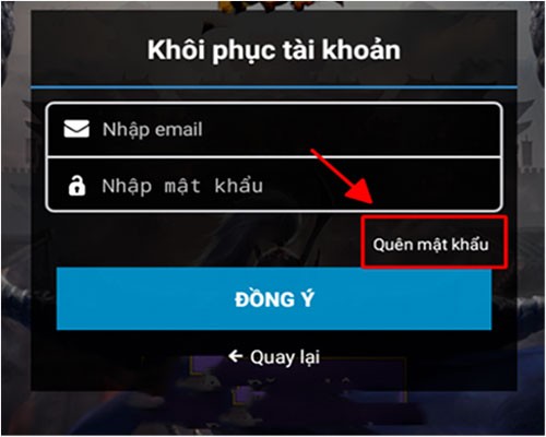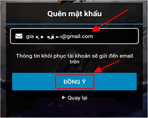 Bước 4: Điền chính xác địa chỉ email đã được sử dụng để liên kết với tài khoản Chơi Ngay và xác nhận bằng cách nhấn nút Đồng ý.