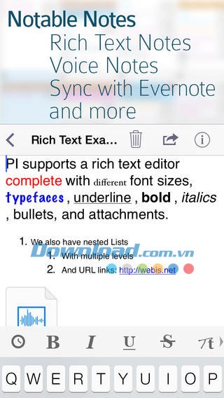 Ghi chú với nhiều định dạng phong phú.