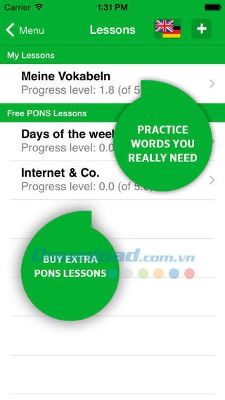Hoàn toàn miễn phí trên các thiết bị iPhone, iPad và iPod Touch, PONS Vocabulary Trainer đóng vai trò như một công cụ bổ trợ đắc lực cho ứng dụng PONS Online Dictionary . Ứng dụng này giúp bạn học ngoại ngữ một cách toàn diện nhờ vào nguồn từ vựng phong phú và thiết thực.