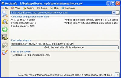Các thông tin chính được cung cấp bởi MediaInfo: