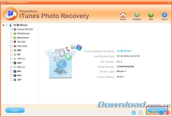 Hướng dẫn khôi phục ảnh với Potatoshare iTunes Photo Recovery