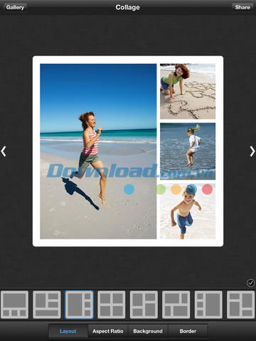Ứng dụng hỗ trợ sử dụng các khung hình ấn tượng hoặc lựa chọn nhiều ảnh yêu thích để tạo ra những ảnh cắt dán độc đáo.