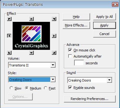 PPT cung cấp 5 cấp độ hiệu ứng 3D khác nhau, từ I đến V. Mỗi cấp độ hỗ trợ khoảng 20 hiệu ứng Style 3D tương ứng. Mỗi Style bao gồm ba mức độ trình diễn: nhanh (Fast), chậm (Slow) và trung bình (Medium). Ngoài ra, bạn có thể thêm hiệu ứng âm thanh phù hợp với gần 50 kiểu âm thanh vui nhộn.