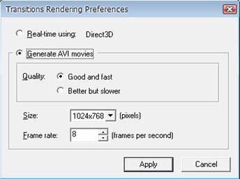Nhấp chọn nút Rendering Preference để chọn chế độ trình diễn cho PPT2.0: Real Time (sử dụng phần cứng hệ thống, phù hợp với hệ thống có cấu hình tương tự máy thiết kế) hoặc chuẩn Video (AVI thông qua độ phân giải màn hình và tốc độ khung hình, phù hợp với hệ thống có cấu hình thấp).