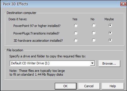 Nhấp nút công cụ Pack 3D Effects để đóng gói sản phẩm. Tùy chọn này dành cho người dùng có am hiểu về chương trình và phần cứng.