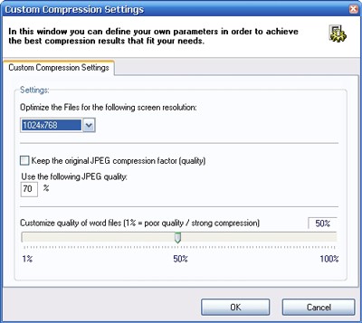 Phần Compression settings cung cấp các tùy chọn nén file với 3 cấp độ khác nhau: