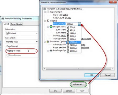 Bạn cũng có thể tùy chỉnh số lượng trang con trên mỗi trang khi tạo file PDF. Để thực hiện việc này, hãy nhấp chuột phải vào biểu tượng máy in PrimoPDF trong danh sách các thiết bị và chọn Printing preferences.