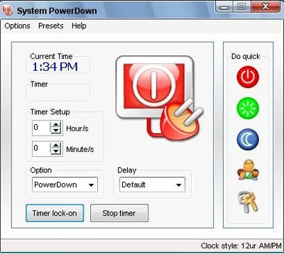 Công cụ System Powerdown cho phép bạn tùy biến các thao tác tắt máy, khởi động lại, chuyển sang chế độ chờ, đăng xuất hoặc khóa máy tính một cách dễ dàng. Bạn có thể cài đặt thời gian cụ thể để Pristy Utils tự động thực hiện các tác vụ này.
