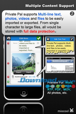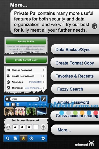 - Bảo mật dữ liệu vượt trội: Toàn bộ thông tin cá nhân được mã hóa bằng các thuật toán tiên tiến. Hệ thống bảo mật được thiết kế khác biệt, tạo nên lợi thế cạnh tranh của Private Pal Free so với các giải pháp tương tự. Chi tiết hơn, bạn có thể tham khảo tại: http://miocool.com/forums/viewtopic.php?f=14&t=32