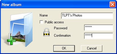 Trong giao diện chính của chương trình, hãy chọn Create album để bắt đầu xây dựng một album mới. Để đảm bảo tính riêng tư tuyệt đối, hãy bỏ chọn tùy chọn Public access.