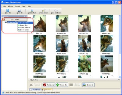 Sau khi album đã được tạo, bạn có thể thêm ảnh bằng cách nhấn nút Import files. Sử dụng phím Ctrl để chọn nhiều ảnh cùng lúc.