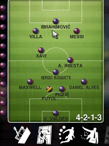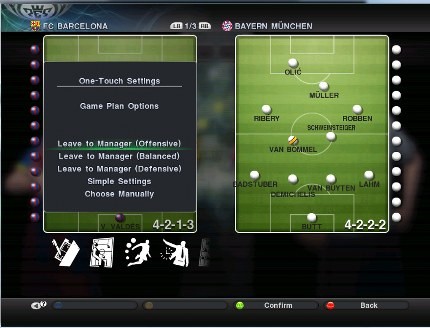 Trong phần lựa chọn chiến thuật, bạn có thể để máy tự động sắp xếp đội hình hoặc tự mình tùy chỉnh. Để thực hiện thay đổi cầu thủ, hãy nhấp vào tên cầu thủ và kéo con trỏ sang cột bên trái. Các menu quen thuộc của PES nằm ở phía dưới màn hình, cho phép bạn chỉnh sửa đội hình một cách dễ dàng.