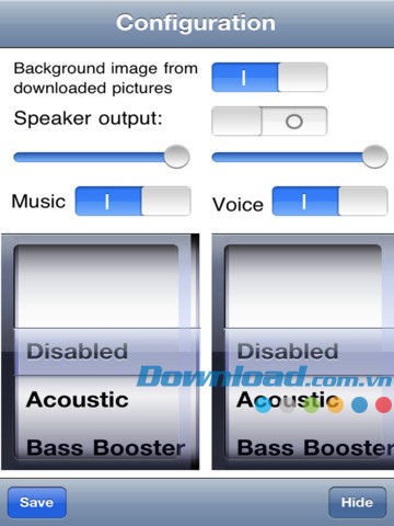 Ứng dụng tự động nhận diện khi cắm tai nghe hoặc xuất âm thanh ra hệ thống loa ngoài thông qua mục cài đặt.