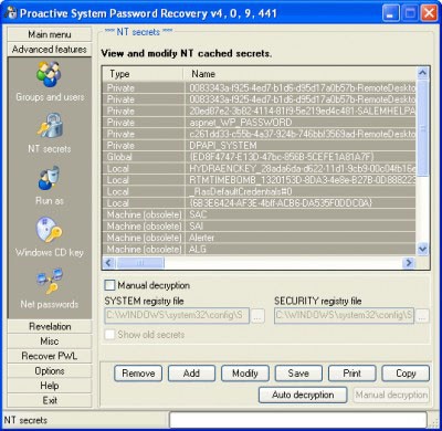 Điểm nổi bật của Proactive System Password Recovery là khả năng truy xuất mật khẩu trong nhiều tình huống khác nhau. Điều này bao gồm mật khẩu đăng nhập người dùng (User logon), mật khẩu .NET Passport, số serial của đĩa CD, và mật khẩu của các phần mềm khác.