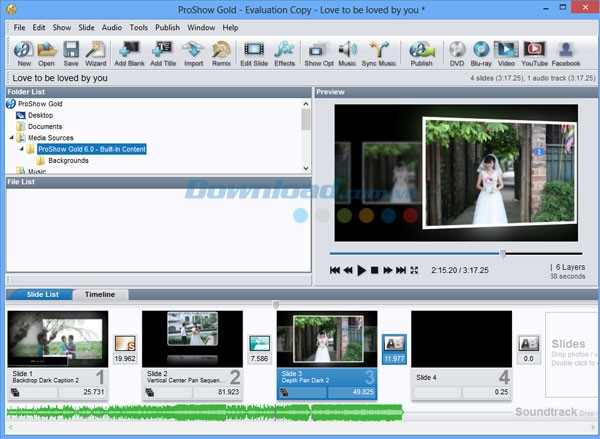 ProShow Gold là phần mềm tạo video từ ảnh và nhạc, cho phép bạn xây dựng các video album ảnh hoặc lồng ghép âm nhạc vào video một cách chuyên nghiệp và thu hút.