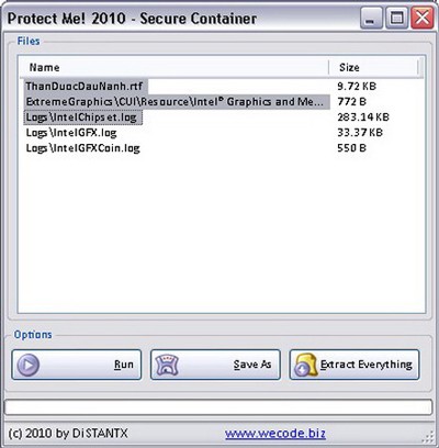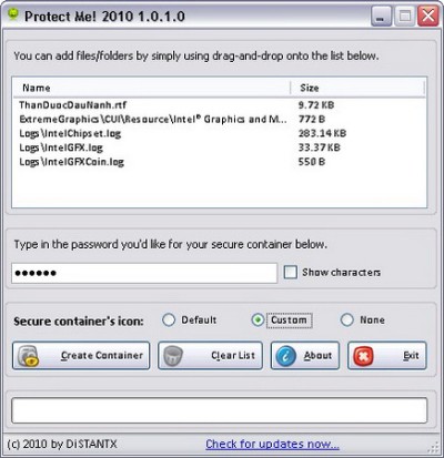 Chỉ cần thực hiện vài bước đơn giản, Protect Me! 2010 cho phép bạn chuyển đổi các file thuộc mọi định dạng hoặc các thư mục chứa dữ liệu quan trọng thành một file thực thi (*.exe) có bảo mật bằng mật khẩu.