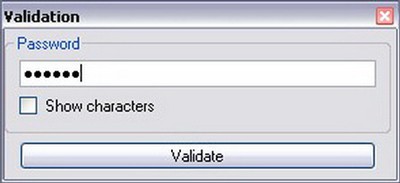 * Khi sử dụng file bảo mật tự chạy trên một máy tính khác, nhấp đúp vào file, nhập mật khẩu đã thiết lập trước đó vào khung Password trong hộp thoại Validation, rồi nhấn nút Validate để xem các file bên trong.