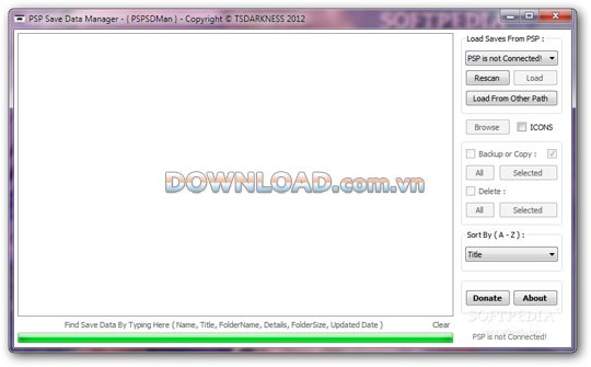 PSP Save Data Manager cung cấp khả năng cho phép người dùng định vị và sao chép các file dữ liệu của máy chơi game PSP.