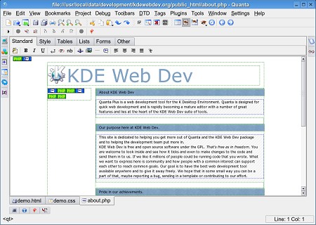 Quanta Plus là một công cụ được thiết kế để hỗ trợ phát triển HTML, tương tự như Kompozer. Phần mềm này cung cấp khả năng mã hóa theo kiểu WYSIWYG (What You See Is What You Get) và mã hóa thủ công, đáp ứng nhu cầu đa dạng của người dùng.