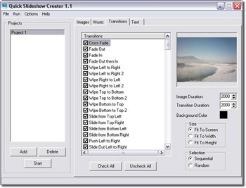 Quick Slideshow Creator là phần mềm hỗ trợ người dùng tạo các trình chiếu ảnh ấn tượng từ hình ảnh và nhạc nền. Bạn có thể dễ dàng trình bày các slide show với nhiều hiệu ứng chuyển động đẹp mắt ngay trên desktop.