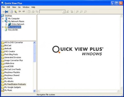 Giao diện xem của Quick View Plus được trang bị hai bảng điều hướng, tạo điều kiện thuận lợi cho việc di chuyển giữa các thư mục và mở nhiều loại tệp tin khác nhau trong cùng một cửa sổ.